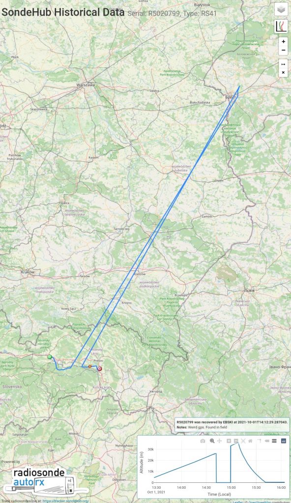 As you can see, it was reporting to be flying at 40m altitude in Belarus for some time. This data was reported by multiple receivers and also affected another sonde T0340269 which reported this identical path….